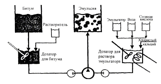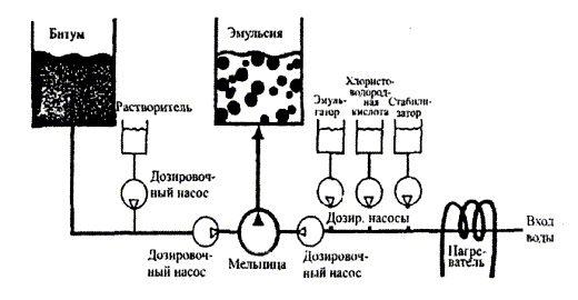 Производство битумных эмульсий может осуществляться на установках непрерывного или периодического действия (рис. 1 и рис. 2).
